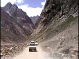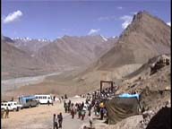 チャンドラ河沿いの道を時速10キロから30キロくらいのスピードで車はひた走る。途中何カ所か雪解け水が道の上を滝のように勢いよく流れ落ちていて、所々道が崩壊している。徐行しながら注意深く通り抜ける。中国の国境が近いからだろうか、何台もの軍用トラックが走っている。追い抜こうにも道が狭くてはかどらない。中国軍はチベットに侵入した後1958年、1959年、1962年とラダックにも侵入している。1965年にはカルギルの近くまで迫っている。インドと中国は戦争をしていたのだった。もしかしたならばラダック、スピティーもチベットと同じ運命をたどったかもしれない。しばらくこの地域は外国人は立入禁止になっていた。