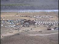 このテント村ですでに到着している予定のチベット人の友人、チャンガが、テントを用意して待っていてくれる手はずになっていた。しかし、今日はもう遅いので明日探すことにして、同行したチベット人のワンチェンさんが用意してくれたテントで、今晩は休む事にした。テントの床はむき出しの地面なのでまずは皆で小石を取り除いて寝袋しいた。テントの中は裸電球だけが一つ付いていた。どこから電気を引っ張って来たのか不思議に思う。あとで解ったのだが発電器のほかに太陽光発電のパネルが数多く、設置されていた。地面が石ころだらけなので背中が痛かったが、疲れていたこともあって、いつの間にかシュラフの中でぐっすり寝いってしまった。