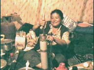 チャンガの奥さんをアマラー(お母さん)と私たちは親しみをこめてそう呼ぶ。テントでそのアマラーが用意してくれたチベタンティーを飲む。チベット人はとにかく良くお茶を飲む。チベタンティーは鍋にお茶の固まりを削って入れて煮出し、それを塩とバターをドンモと呼ばれる木性の長い筒に入れて良くかき混ぜて作る、濃厚な味のする独特なお茶である。飲み干すとすぐに何回もお茶をつぎ足してくれるので「ラミー・トウチジェ」と言って断らないとすぐにお腹がお茶で一杯になる。