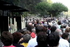 町はハレルヤと賛美歌が流れ、車イスや寝たきりのまま車付きのベッドで移動する人々でいっぱいだ。私の様なカトリック教徒でない人々も含めて世界中からこのルルドに引き寄せられている。今のルルドはバチカンやメッカ、エルサレムを凌ぐ世界最大の巡礼地なのである。ルルドの巡礼シーズンは4月1日から10月10日までで冬の時期はホテルや土産物屋はほとんど閉めてしまう。